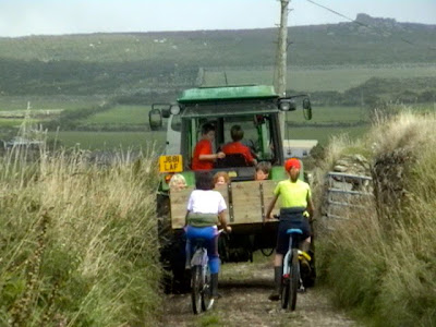 Cutting bracken on the moor – the more the merrier, its hot sweaty work using long handled scythes and bill hooks.