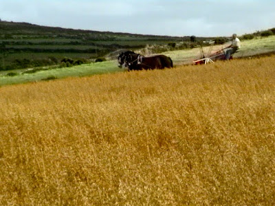 This is one of the lovely fellows that worked as a team to cut and bind the oats – you can see how big they are, one of these is equivalent to 10 horsepower in a tractor and it took 2 horses.