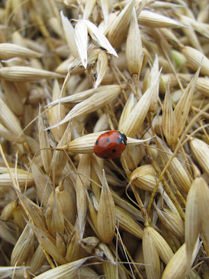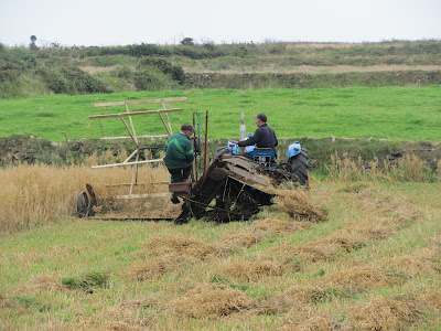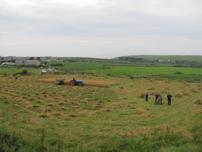 This year the oats and barley have been bound by a Fordson Power Major, the horses were busy at a ralley. Friends and family helped place the sheaves in stooks.