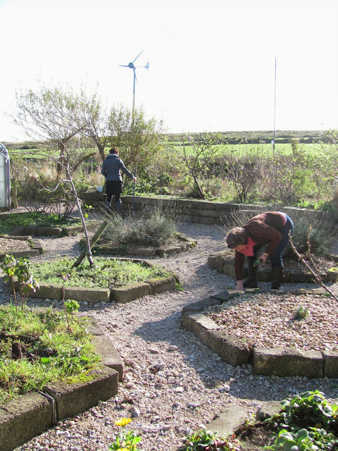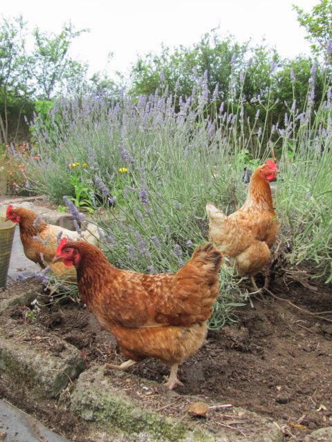 The perennial garden is coming along with the chickens kindly removing slugs from the beds.