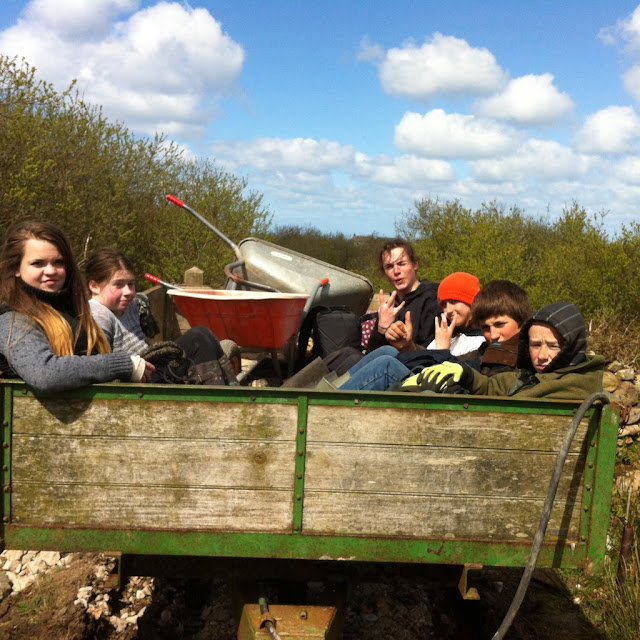 So we set to work; this involves creating fire breaks, doing occasional burns, and follow up grazing. We come up with our own temporary fencing system using homemade 12mmm steel posts. We continue work in our woods, planting more rotation coppice, laying more access paths, and building up shelter and woodland in our 2 acre field, Withy Garden. We have help with all of this for 3 years while I run a Land Based Short Course with Cape Year 9’s. All 3 years were marvellous – got a lot of work done while acquiring a GCSE in Personal Effectiveness.