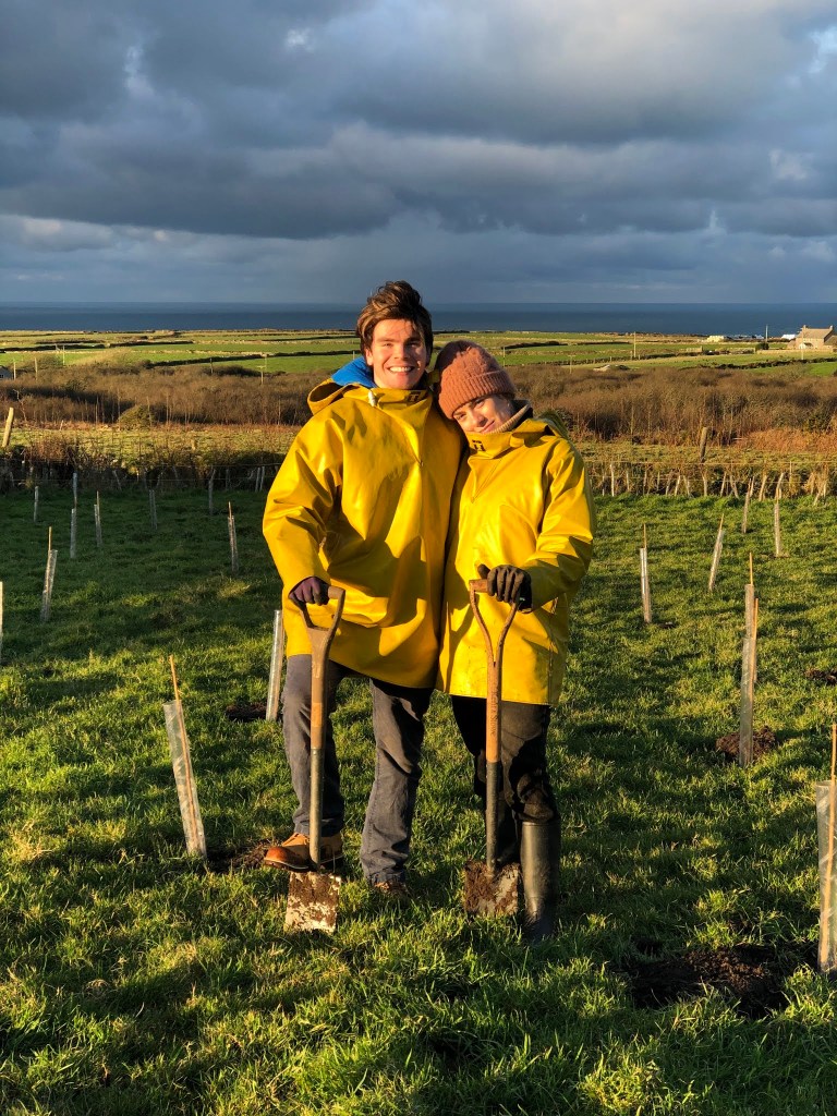 Here’s Leo and Esme who helped me plant 170 sessile oaks and 50 silver birch, this is within a planted hedgerow of willow, hawthorn, hazel, and lime.