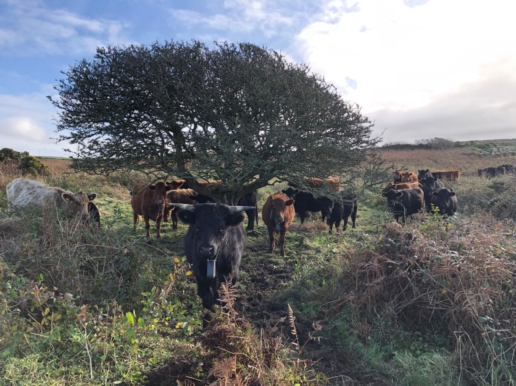 Finely grained muscling of the smaller cow, with it’s unique ‘spider’ marbling of fat keeps the flavours locked into the most tender beef. Descended from our ancient Celtic breeds, they have helped create the historic field patterns and moorlands we see today and are well suited to this wild landscape. At Higher Keigwin they are the keystone species; a thrifty, light-footed herbivore that grazes a diversity of habitats and transforms it into the most fortifying and nourishing of all meats. We also breed Dangus’s – a mostly Dexter cow with a bit of Angus – this makes a vigorous and well formed animal.